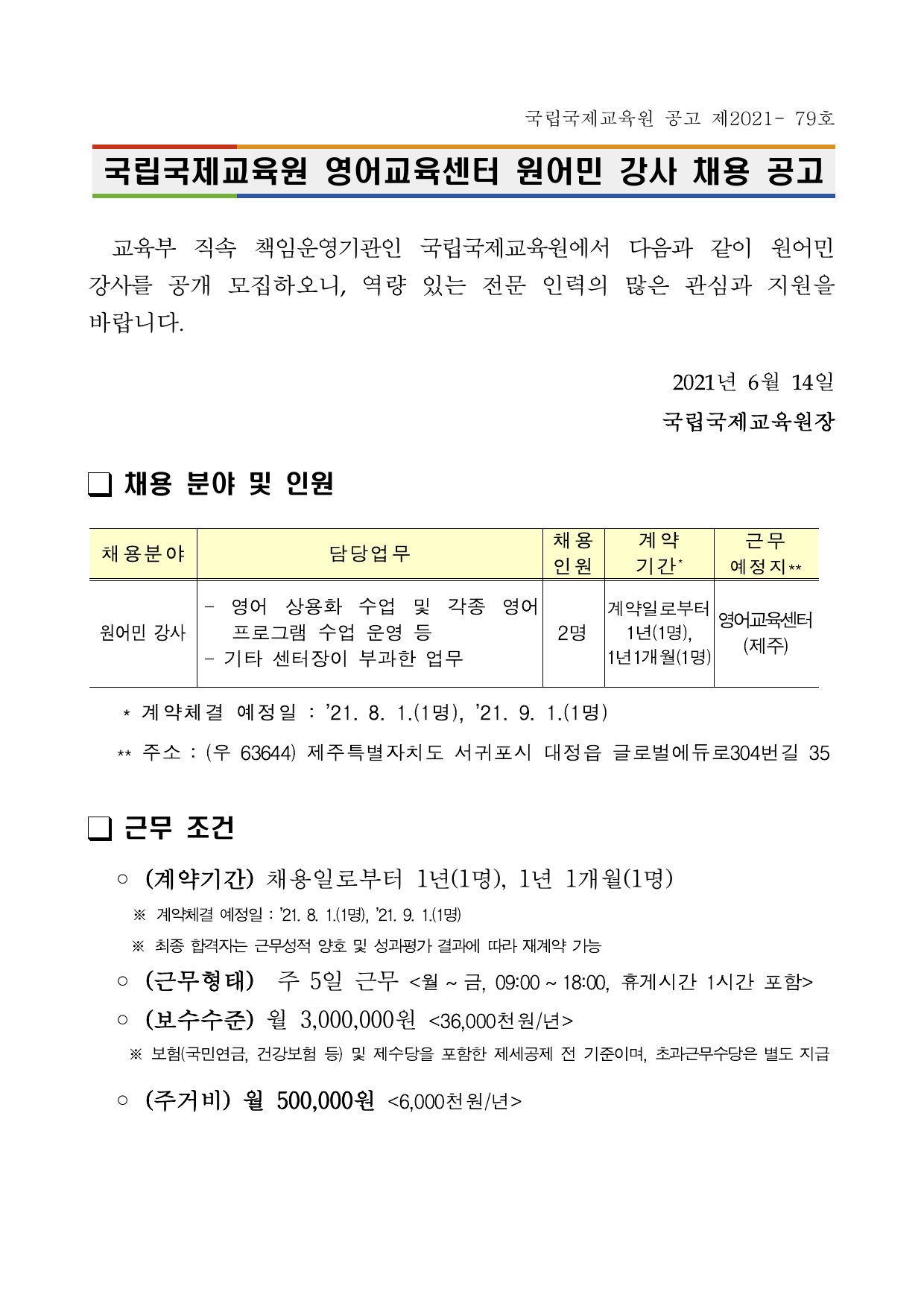 2021년 영어교육센터 기간제근로자(원어민강사) 채용 공고(안).pdf